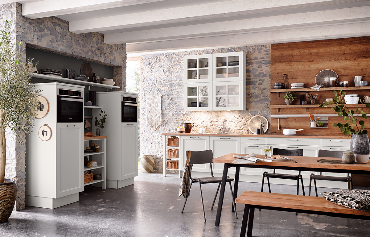 The combination of a rustic look and soft, gentle tones makes Ravenna perfectly suited both to traditional kitchens and contemporary minimalist interiors. With a thoughtful choice of handles and accessories, you can easily transform the rustic charm of the Ravenna kitchen into an elegant, modern style.