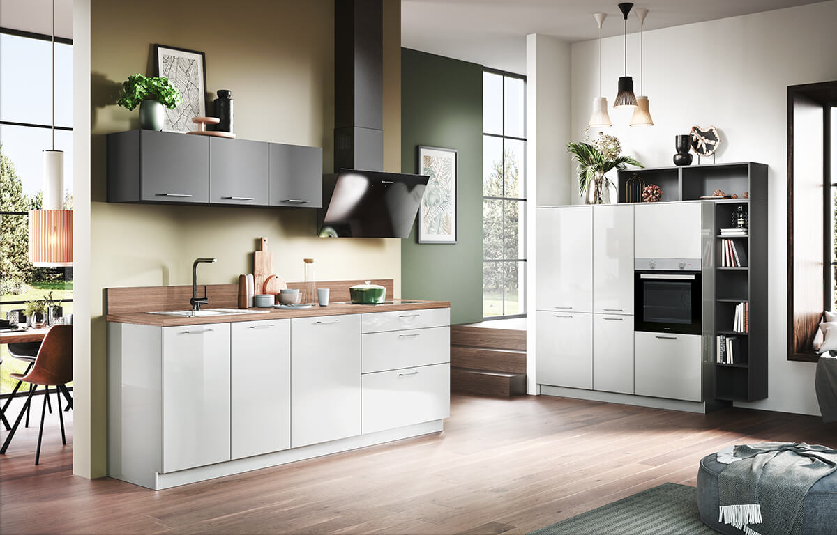 Moderna kuhinja v visokem sijaju, po zelo dostopni ceni. Lahko tudi brez ročajev in s široko barvno paleto. Ker kakovost pri Häckerju nikoli ni vprašljiva, je kuhinja Top Brillant pravi prodajni hit.