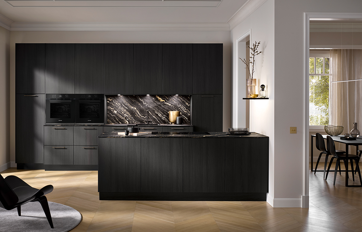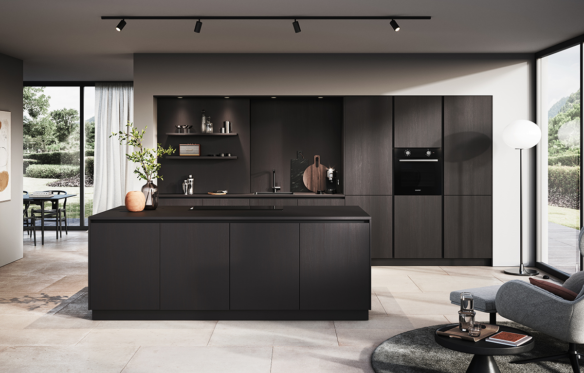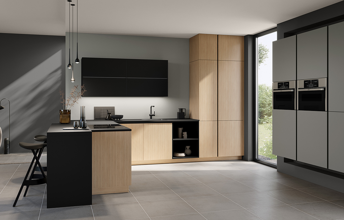 V vseh različicah lesnega dekorja so na voljo tudi delovne površine, stranice, police in podnožja. Kuhinja AV2040 je seveda na voljo tudi v moderni različici brez ročajev. Vabimo vas, da si jo sestavite po svojem okusu.